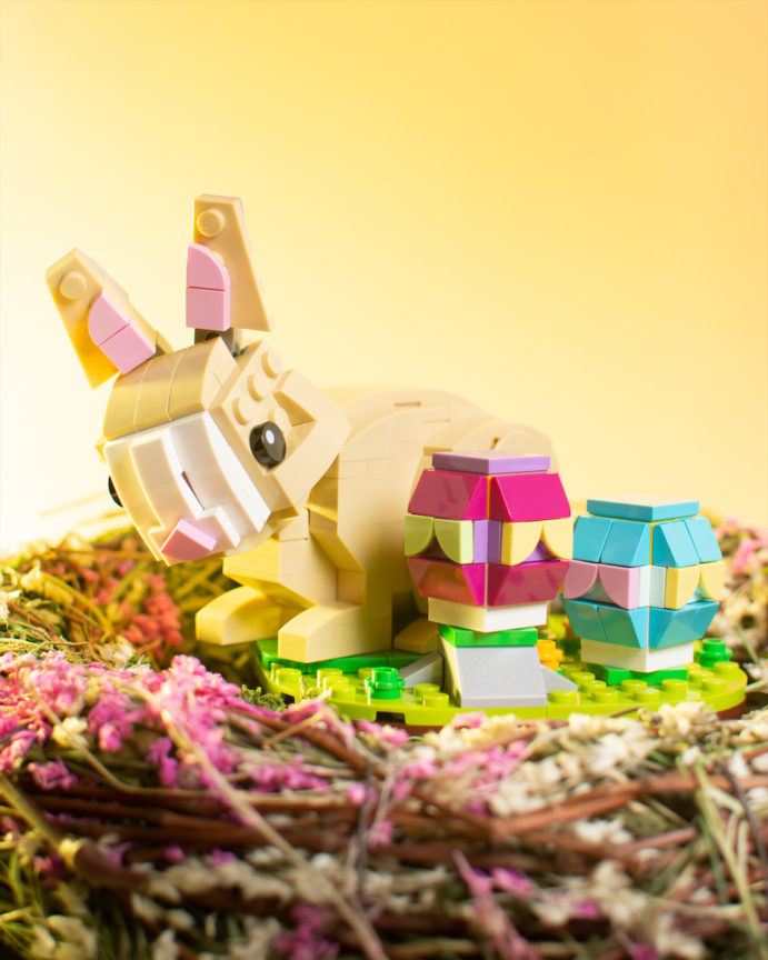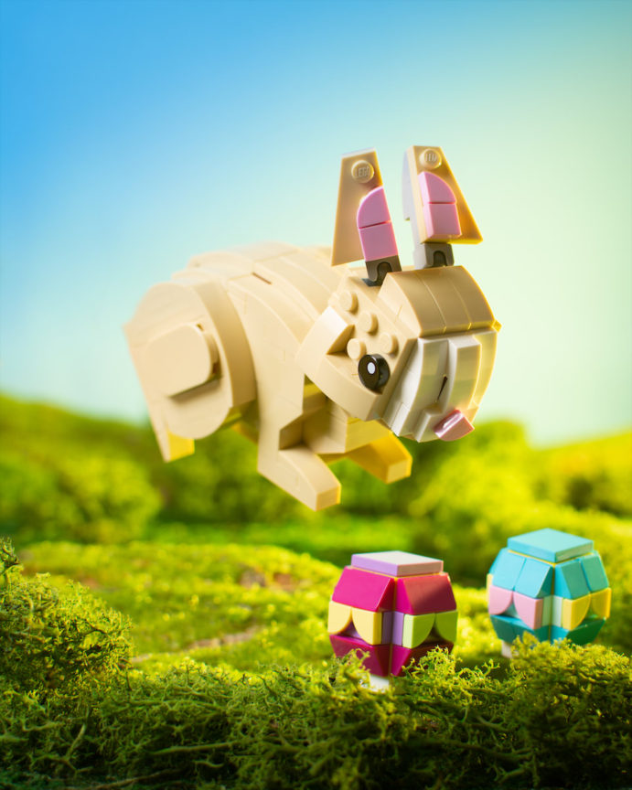 Today I invite you to take a look at the next seasonal LEGO set. The set embodies one of the most recognizable Easter symbols in the world – the bunny. It’s a cute beige bunny on a green lawn with a pair of brightly colored eggs. Let’s take a closer look.