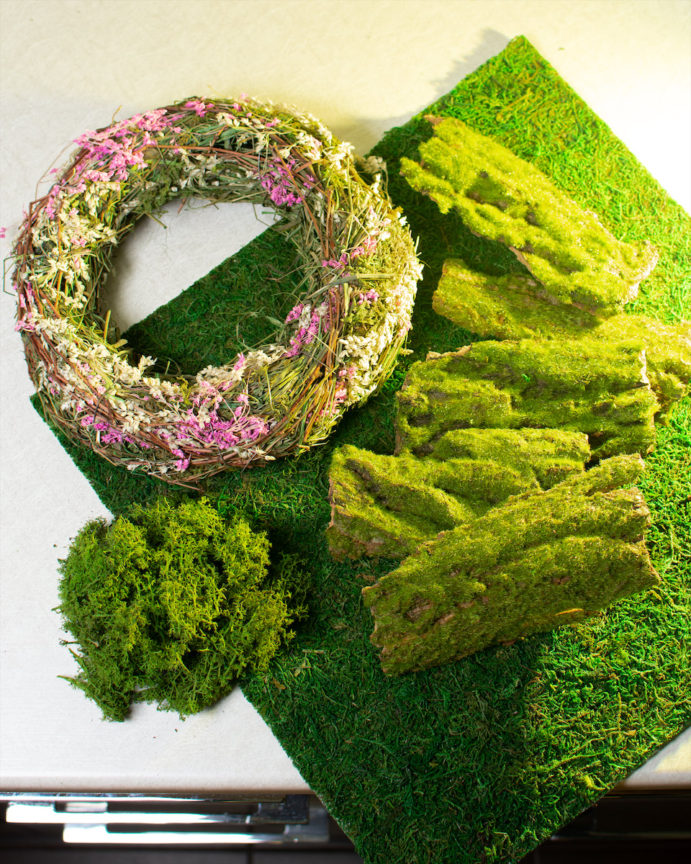 I took a large sheet of dried grass, moss, tree bark, and a diadem of dried flowers. With these simple things, you can create any kind of scenery, especially when it comes to a fairy tale. I liked working with natural materials, their smell reminded me of summer walks in the forest.