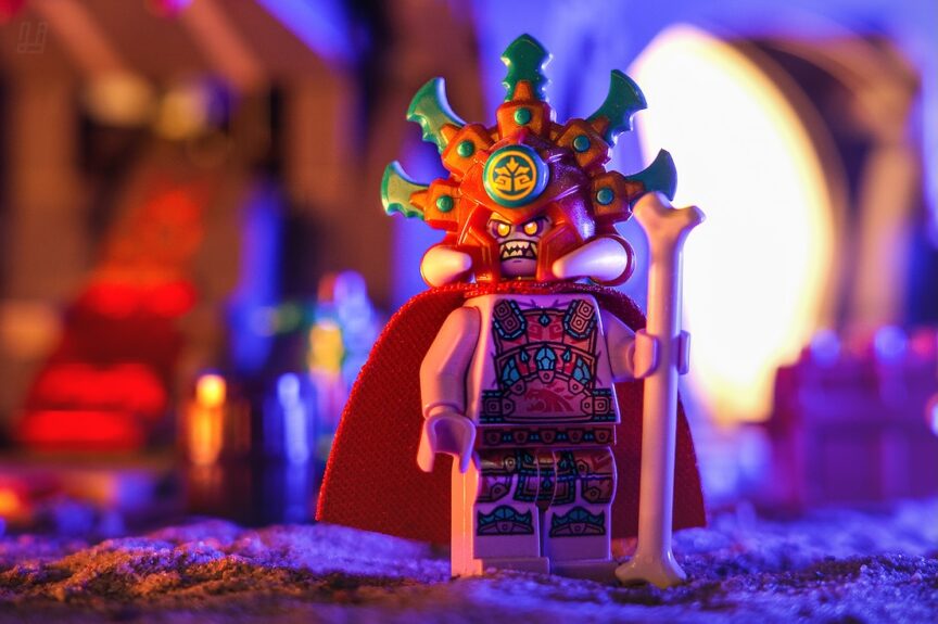 For my exclusive photo I worked with a Ninjago set and used Chief Mammatus as the main character. I built this scene indoors. Although I usually shoot outside, I also enjoy working with staged lighting when I want full control over the atmosphere.
