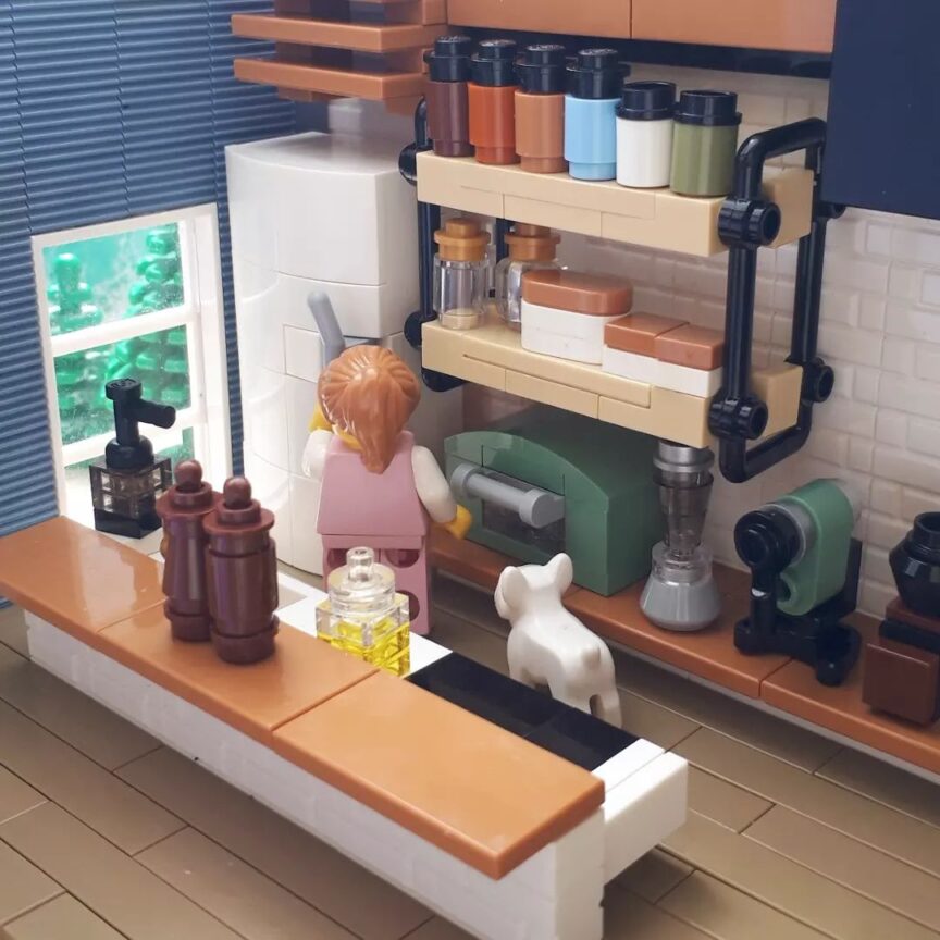 One challenge I faced with this moc was crafting kitchen utensils in minifig size. Specifically, I struggled with creating a coffee mill. After a few attempts, I finally achieved a design that feels cozy and familiar.