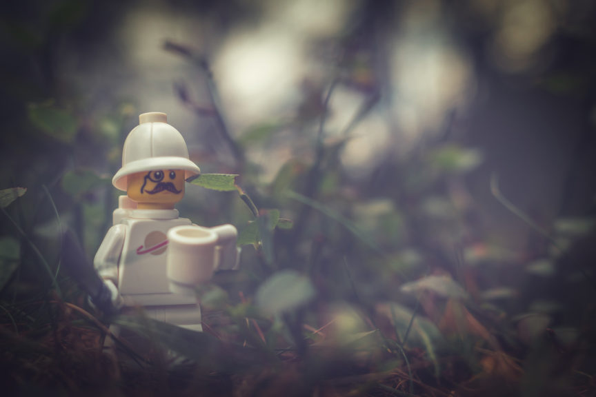 The minifig is often portrayed on ice, snow, leave, mud, pebbles, mushrooms, since I go trekking in the mountains in my free time. That’s the time when I’m most creative and, as you can see, nature is not only a background, but it’s a protagonist in the pictures, it co-stars with my little men.