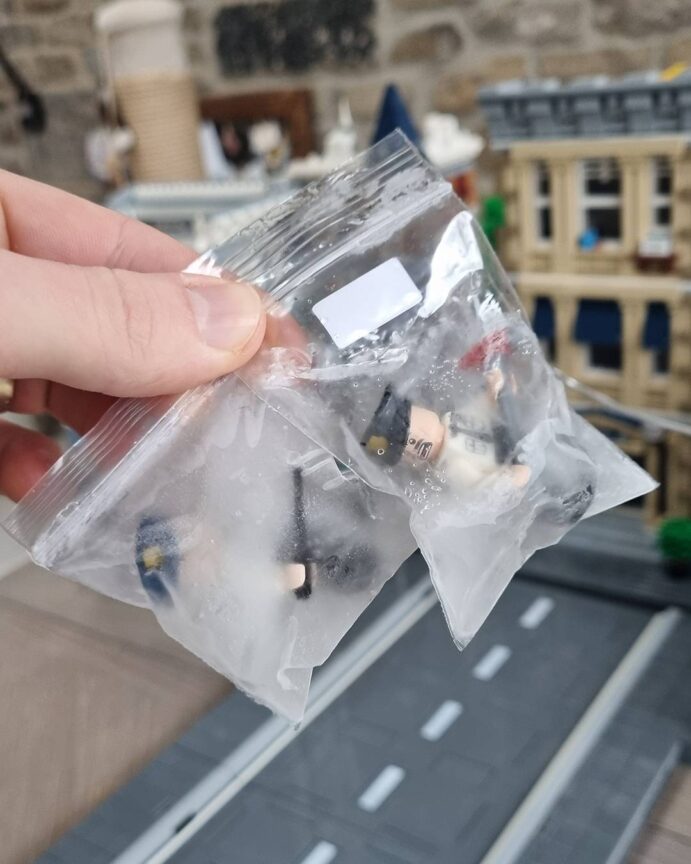 Now, it wouldn’t be a Mr. Freeze attack if we didn’t include his frozen victims. I made use of some of the many plastic pouches I’ve received from past Bricklink orders, put the Minifigures inside with water, and placed them in the freezer. Once ready to shoot, I shaped the ice to my liking with water and a knife. This was the biggest challenge of the shoot as once you have the ice ready it becomes a race against time as they slowly begin to melt. Especially as I still had the lighting to adjust and planned to use focus stacking to get both the frozen minifigures and Mr. Freeze in focus.