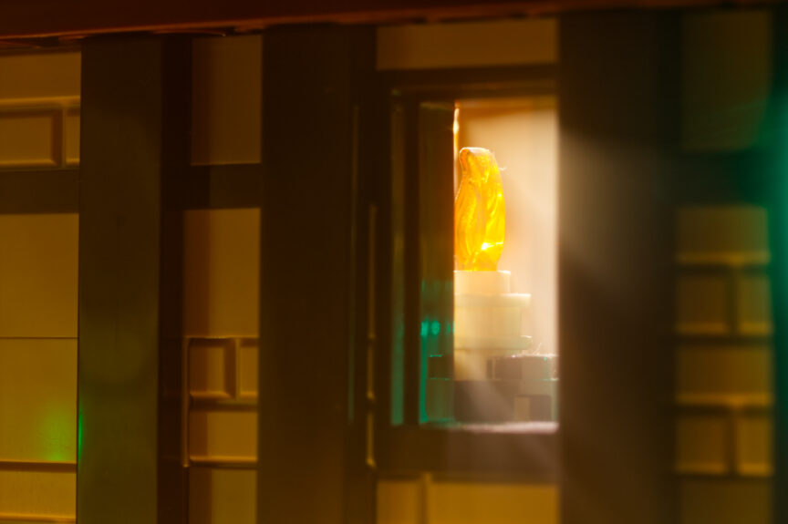 For example, I wanted to photograph the entrance lit only by the lantern, but that’s impossible: the lantern shares its circuit with two additional LED strips, so they turn on and off together.