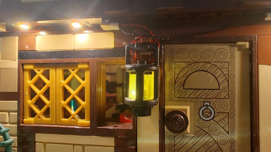 Once installed, the set completely transforms. The lighting adds depth, atmosphere, and turns the cottage into a perfect display piece.