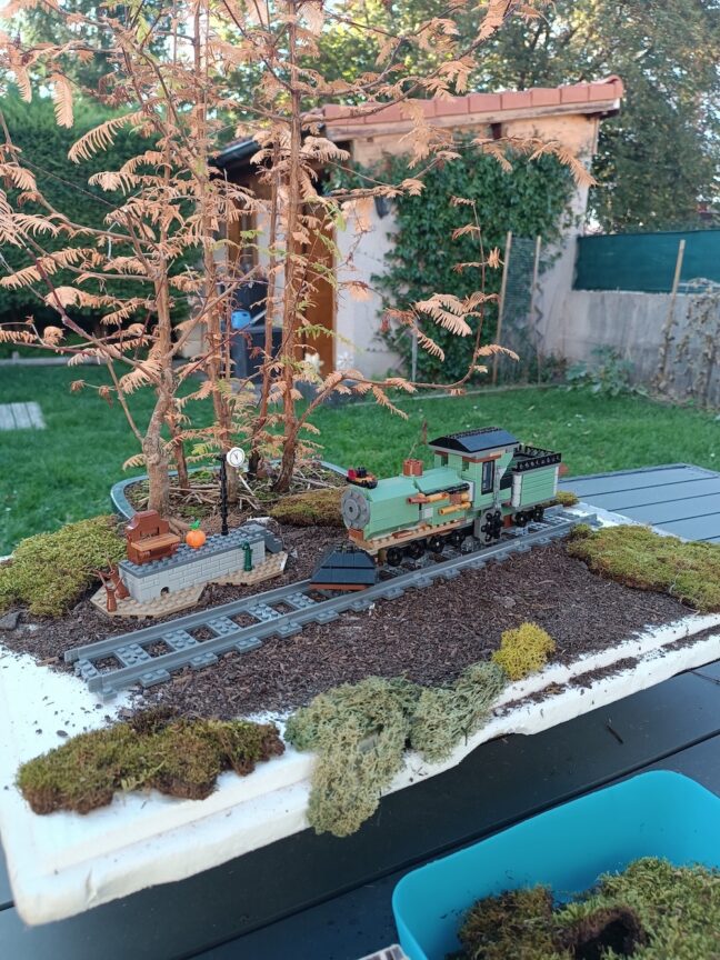 For the ground, I always use the same base, which allows me to adapt depending on the scene. A polystyrene plate (allowing me to plant tree branches or other decorative objects) that I decorate with cactus substrate. The substrate is thin enough to be used in a setting.