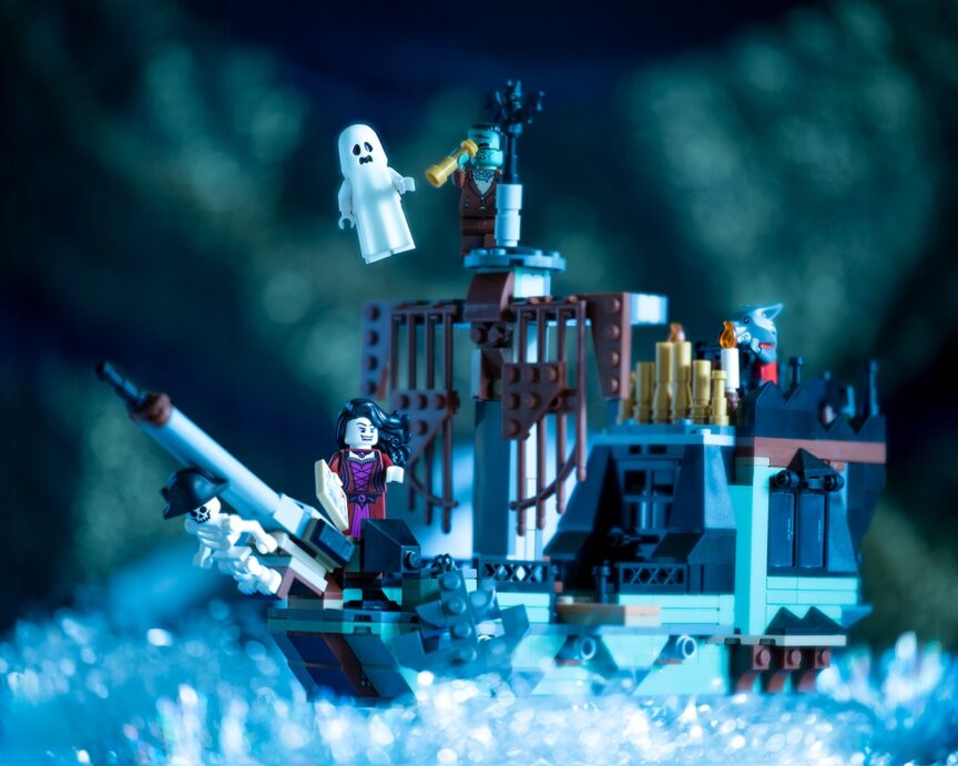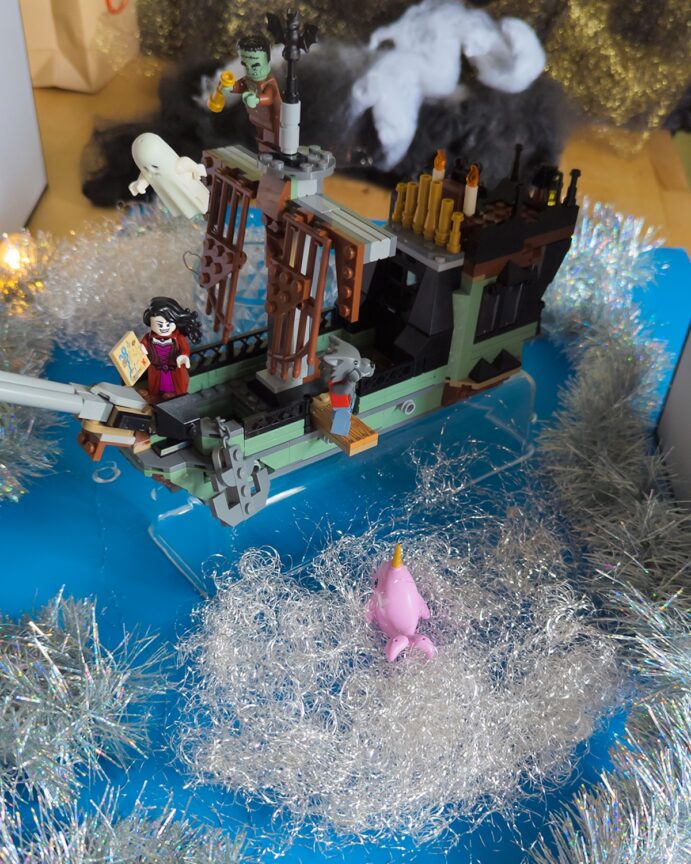 Stories in which ships also appear often promise great adventure, so I was very excited to take on the scenes with the ghost ship, one of the alternative builds of the Haunted Mansion. Right at the beginning of the story development, I had the idea that our heroes should encounter someone on their sea voyage whom they really wouldn’t expect. Gladly I found a sea creature extraordinary enough for this appearance.