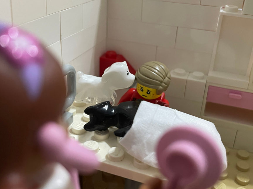 My husband and kiddo surprised me with a Canon EOS M50. Using an iPhone and a professional camera is very different, at least in my experience. I was able to do in-camera effects thanks to Four Bricks Tall’s challenges. The community helped me recreate my “ghost dog” scene with the feedback that I needed!