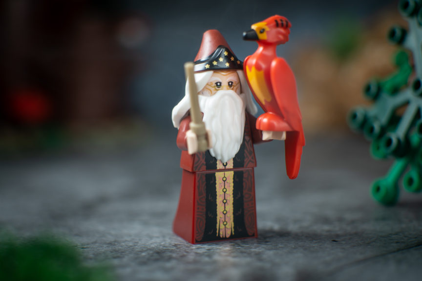 Dumbledore is my next favorite character in this series because he’s got a more D&D-looking wizard-y hat and garb. Never mind that he also has a phoenix!