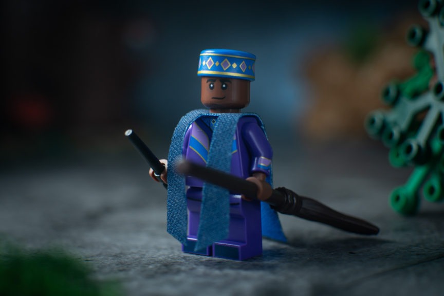 Instead of using a bounce card or third light to fill in the shadows on the right side of the minifigs which were not lit by the key light, I dragged my shutter to 1/40 and let the ambient light take care of it.