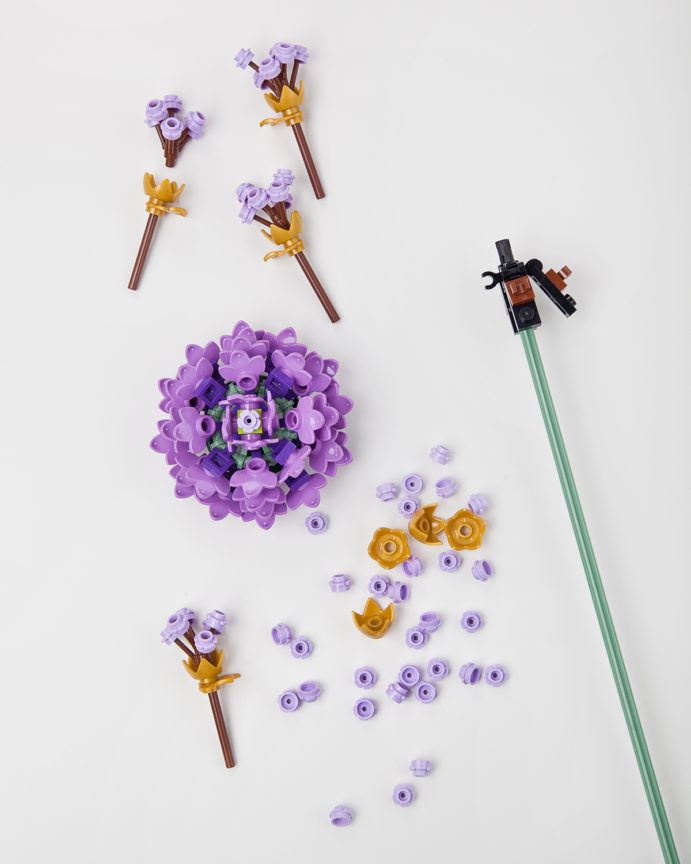 The Lavender gives the necessary delicacy and airiness to the composition. The height of its blooms can be easily adjusted, but unfortunately it is the flimsiest flower of them all in the set. It is also the most challenging one to build as it requires positioning many tiny flowers on stalks.