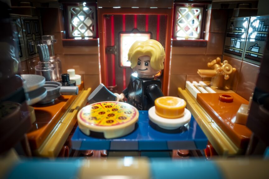 The interior, however, was more challenging. The tight spaces clearly weren’t designed with photography in mind, and I had to dismantle parts of the model to position my lens correctly. For the kitchen shot, I switched to my probe lens to fit into the narrow space. There aren’t many openings for light in the kitchen or cabin, so more dismantling was needed to light things the way I wanted.