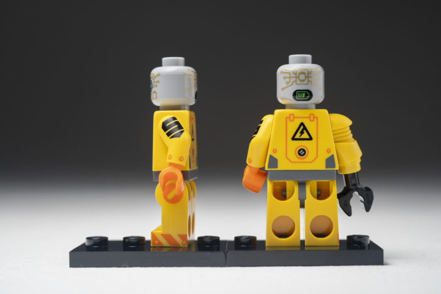 The regular arm has a design that looks like an “S” which might be an Easter egg but I have no clue what it refers to. I love the little battery indicator on the back of the robot’s head.
