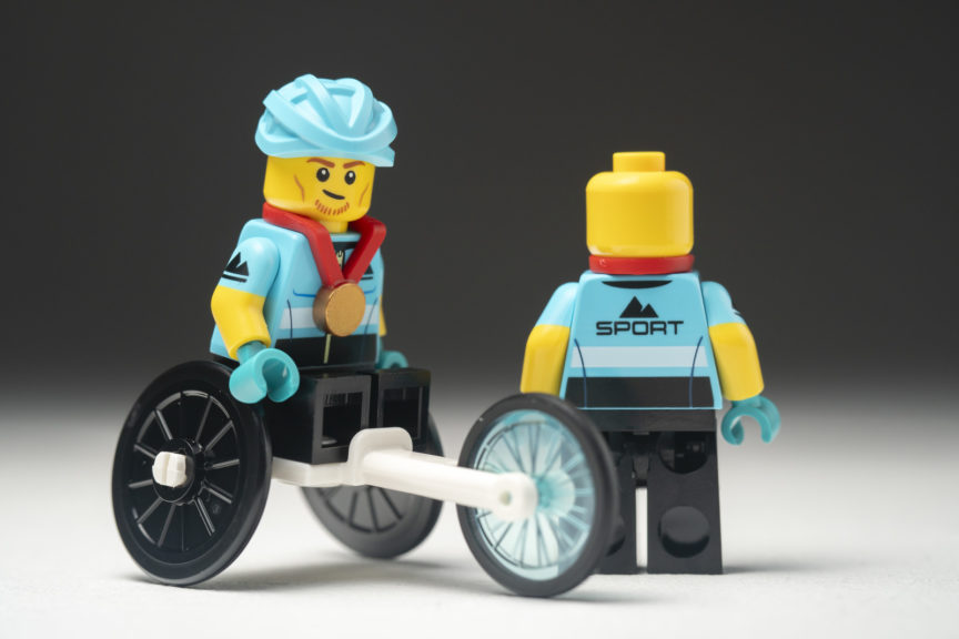 The Wheelchair Racer is sponsored by LEGO’s sport clothes brand, um, SPORT.
