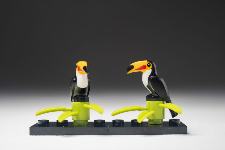 The toucan is pretty cool and will go well with rainforest scenes. I like that we get a lime green plant part included with this minifig too.