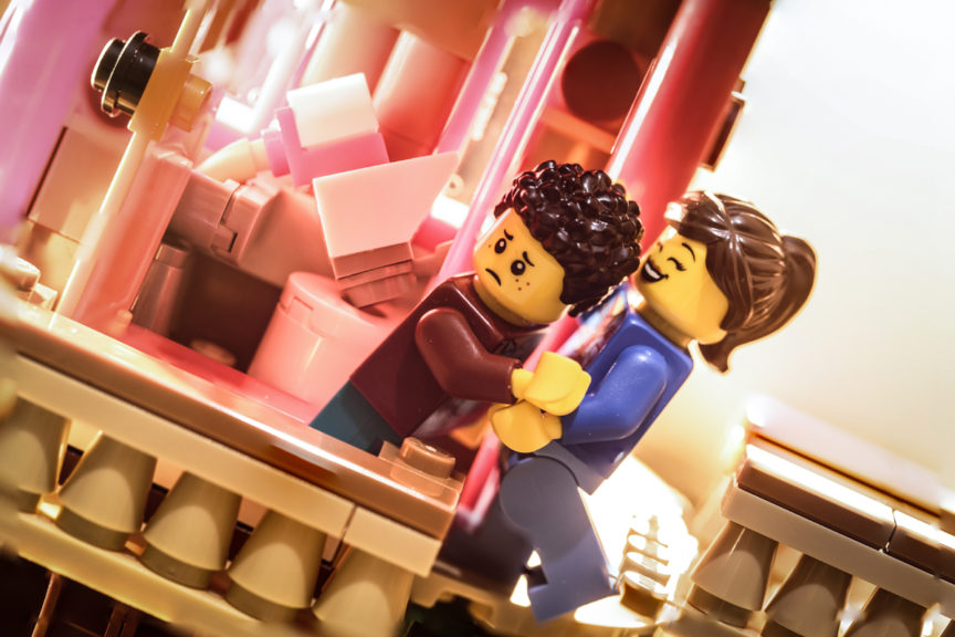 What’s in the “house”? Don’t get your hopes up. It is very narrow, and only has room for a sink and a toilet. I would dare say it’s more a WC than a house if it wasn’t for the sad fact that a minifigure can’t even sit there with the door closed (helloooo, privacy?) Well, one could fit something else in there. I tried, successfully.