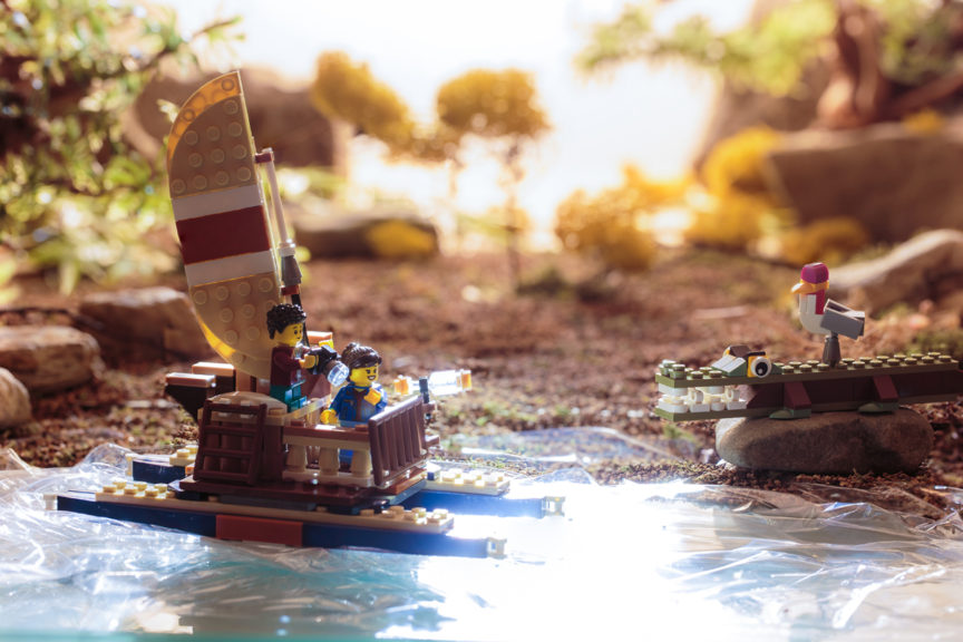 This model uses some clever SNOT techniques for the floaters. The boat is again very convincing, has room for the two minifigures and has a rotating sail. If it wasn’t for the fact that we lose the giraffe when building this, it would be my favorite of the three models.