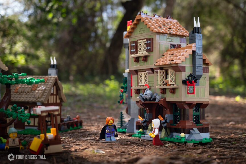 I’m just an average builder but I wasn’t wowed with any techniques or design choices in Medieval Town Square as I was with the Lion Knights’ Castle. A lot of the wattle and daub (that half-timber look) as well as the roof design is the same as in the Castle so if you already have the bigger set, these might even feel tedious to do.