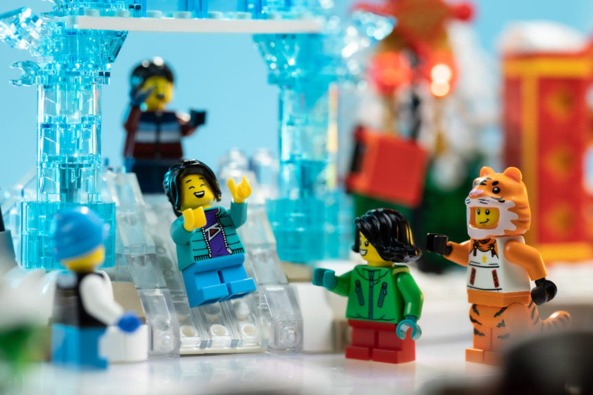 The Lunar New Year Traditions include 6 vignettes featuring five different activities that are customary for the celebrations and a vignette of the God of Wealth surrounded by gold. The Lunar New Year Ice Festival features an ice-skating rink with many activities for your minifigures to participate in. Since the two sets are so different, I’ve divided them up into their own sections.