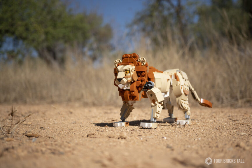 There are some interesting building techniques used on the head– those killer eyes are the same part used for the giraffe’s ears, for example– and that makes the lion worth building.